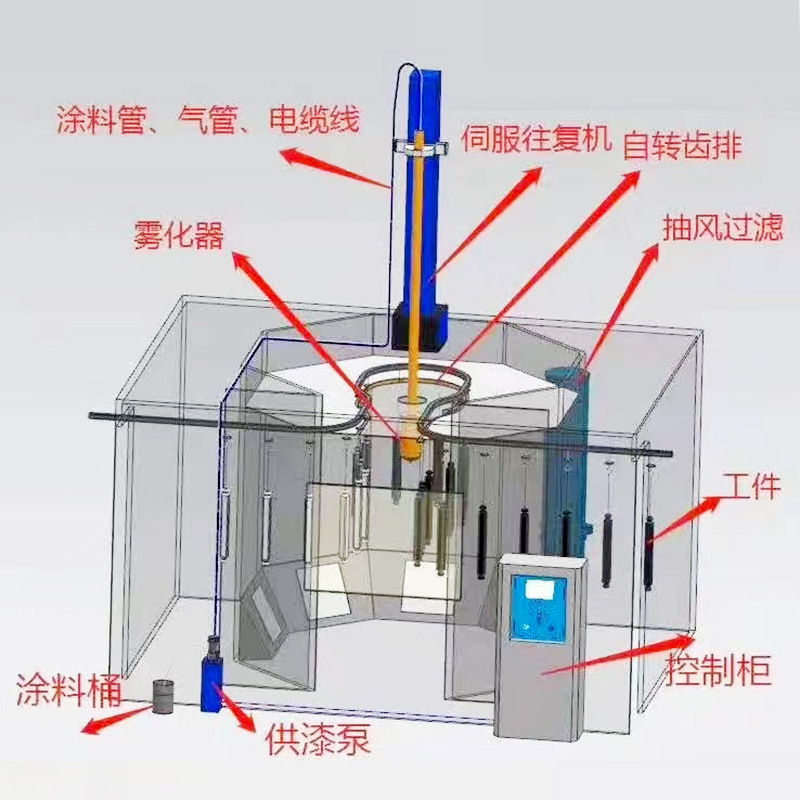 本公司生產(chǎn)的自動(dòng)噴漆流水線設(shè)備具有一次進(jìn)行多個(gè)工件噴涂,噴涂效率高,多重的空氣凈化系統(tǒng),工作環(huán)境好,工作負(fù)荷小,機(jī)械自動(dòng)化操作等顯著特點(diǎn)。廣泛應(yīng)用于工件表面的清理,金屬的銹蝕層、熱處理件表面的殘鹽和氧化層、軋制件表面的氧化層、鍛造件表面的氧化層、焊接件表面的氧化層、鑄件表面的型砂及氧化層、機(jī)加件表面的殘留污物和微小毛刺、舊機(jī)件表面等進(jìn)行處理,以去除表面附著層,顯露基體本色。