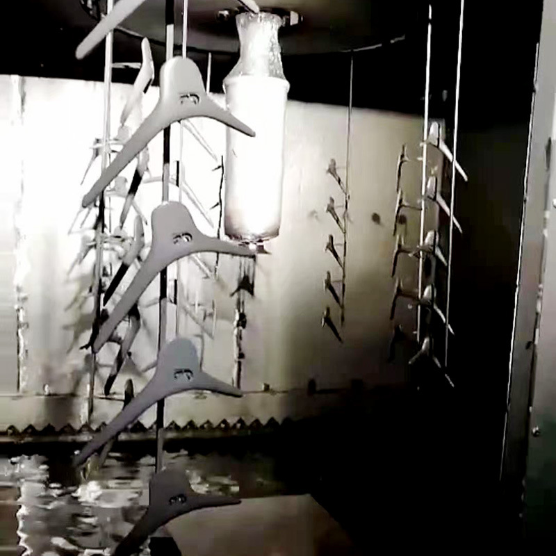 注意:吊掛具對(duì)靜電噴涂的影響是較大的。這是因?yàn)殚L時(shí)間大批量生產(chǎn)后,吊掛具作為接地極同樣很容易吸附上涂料,如不定期清理、更換,形成較高的電阻,大大降低靜電吸附效果。另外,應(yīng)特別注意工件的懸掛方式,以盡量減少噴涂死角。漆膜未干之前,應(yīng)妥善保護(hù),避免烈日直曬或嚴(yán)寒冰凍。