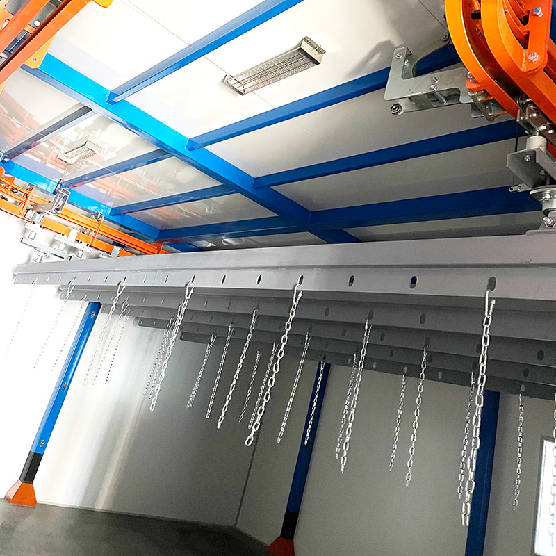 注意:吊掛具對(duì)靜電噴涂的影響是較大的。這是因?yàn)殚L(zhǎng)時(shí)間大批量生產(chǎn)后,吊掛具作為接地極同樣很容易吸附上涂料,如不定期清理、更換,形成較高的電阻,大大降低靜電吸附效果。另外,應(yīng)特別注意工件的懸掛方式,以盡量減少噴涂死角。漆膜未干之前,應(yīng)妥善保護(hù),避免烈日直曬或嚴(yán)寒冰凍。