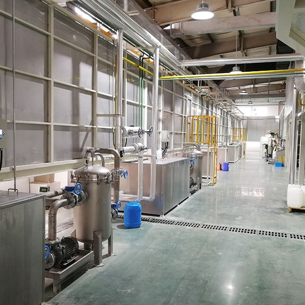 1)預(yù)脫脂——2)脫脂——3)第一次水洗——4)第二次水洗——5)表調(diào)——6)磷化——7)第三次水洗——8)第四次水洗——9)純水洗---10)靜電噴塑----11)固化
